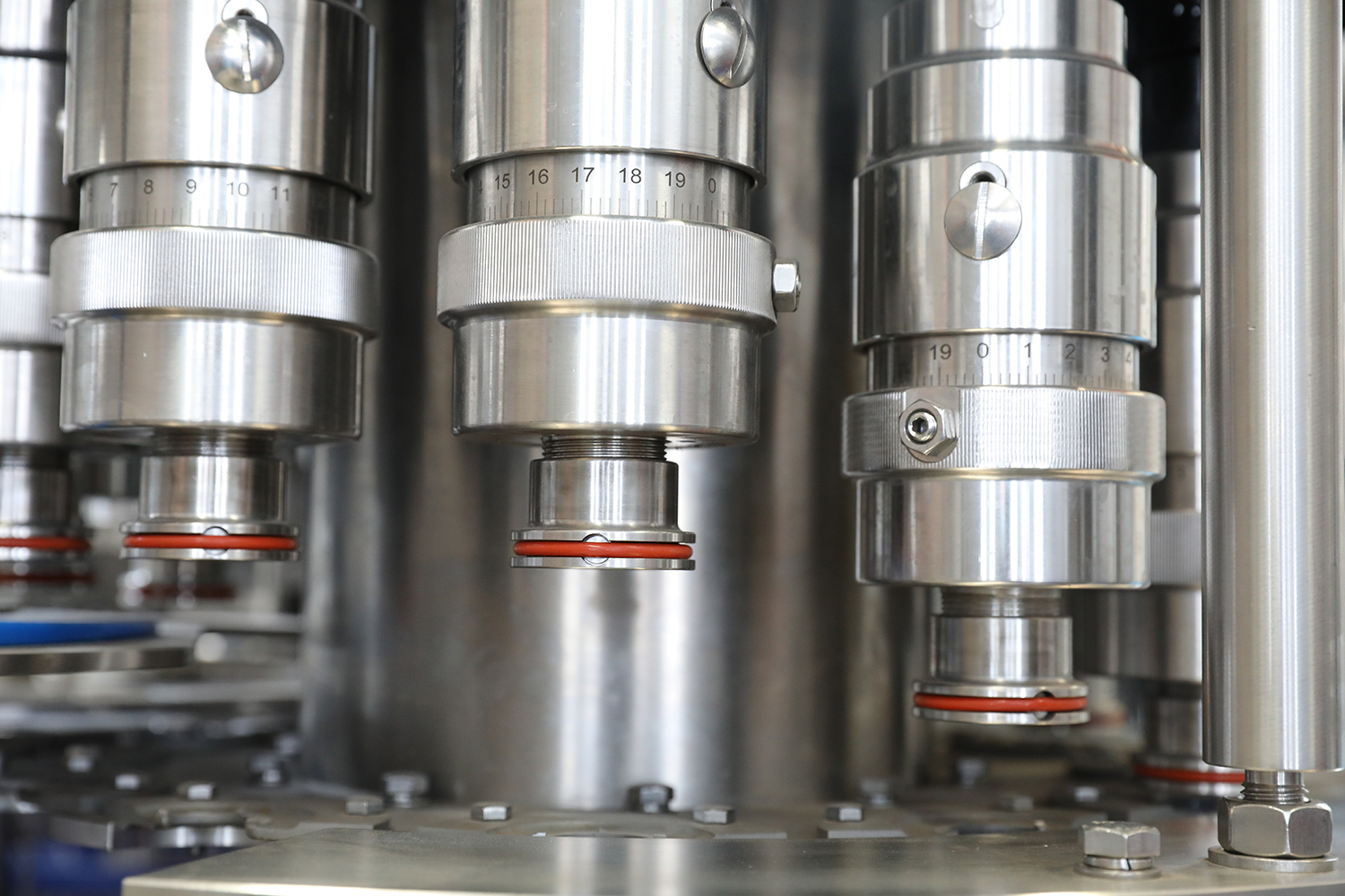 3. Filler Filling valve use isobar machinery valve, High speed and big flow, the high accuracy filling valve, filling speed fast, the liquid level is stable. | 4. Capper The bottle into the click wheel through the transition card bottleneck Capping Machine. |